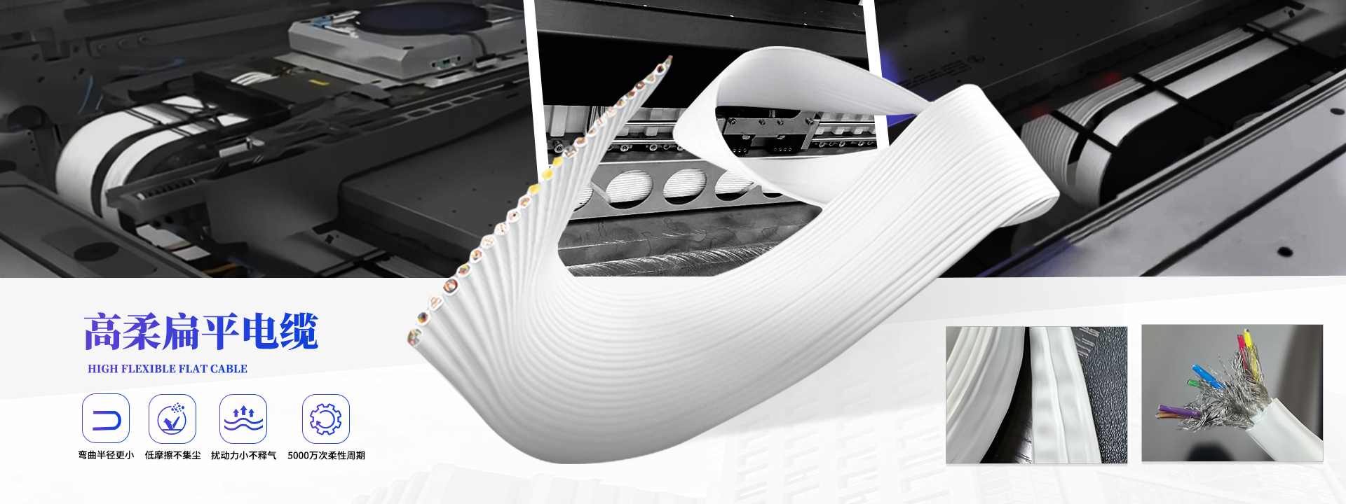 1. 高柔耐折彎:彎曲半徑小,運行壽命超2000萬次;